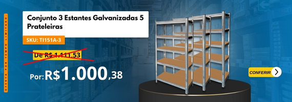 Estante em Aço Galvanizada 950 Kilos - 180x180x60cm c/ 5 Prateleiras - M18060-12 Preço Especial R$ 1.887,78 Preço R$ 2.220,98